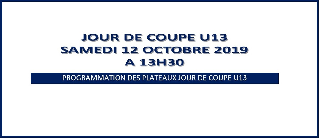 U13 : programme du jour de coupe du samedi 12 octobre.